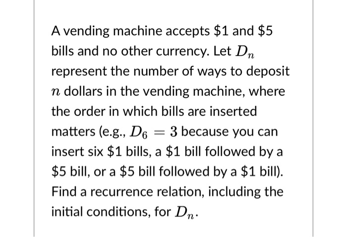 Solved A Vending Machine Accepts 1 And 5 Bills And No O